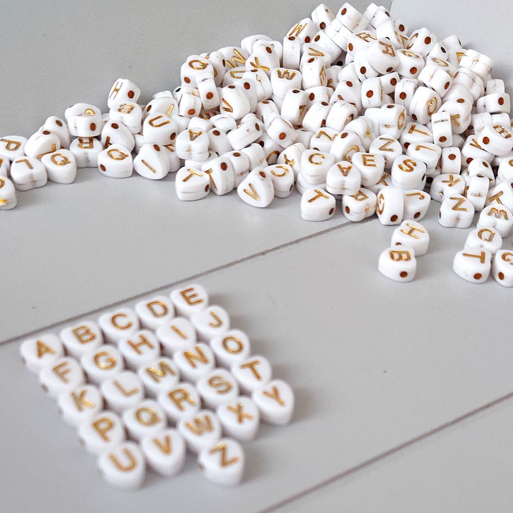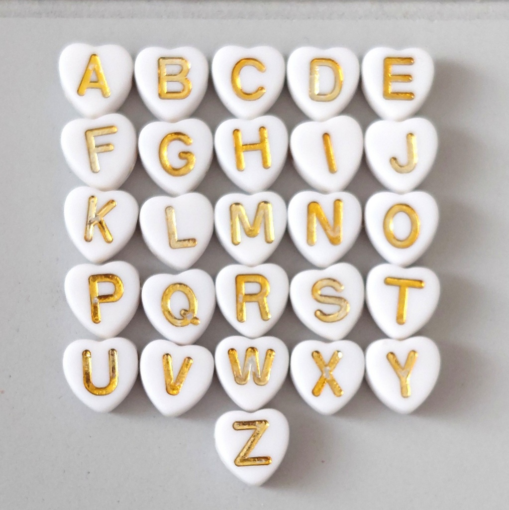 Buchstabenperlen Herz-Weiß-Gold 100Stk