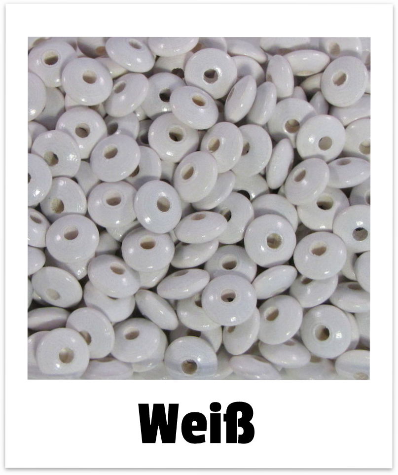 1 Päckchen = ca. 60 Stk.   |   Ø ca. 10/5 mm, Bohrung ca. 3 mm   |   Material: Ahornholz