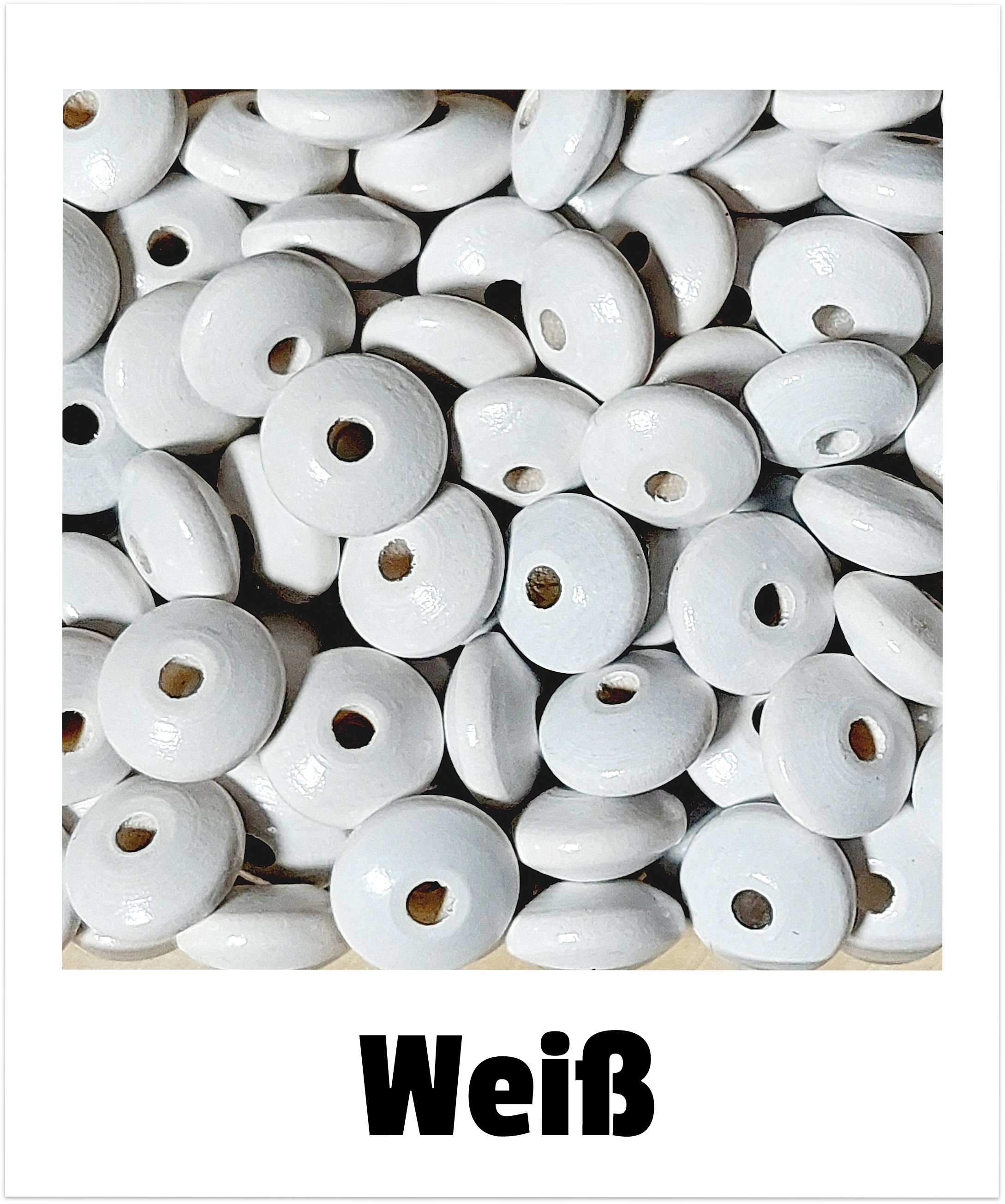1 Päckchen = ca. 50 Stk.   |   Ø ca. 14/7 mm, Bohrung ca. 3 mm   |   Material: Ahornholz