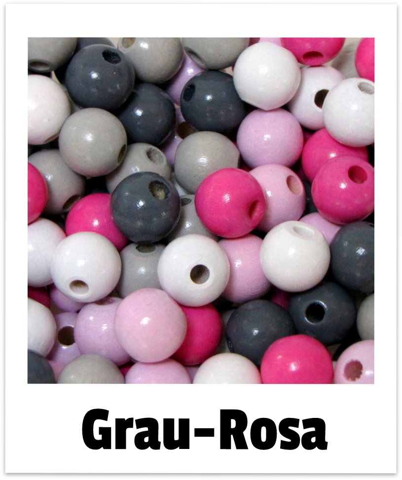 Holzperlen Gemischt 12mm grau-rosa