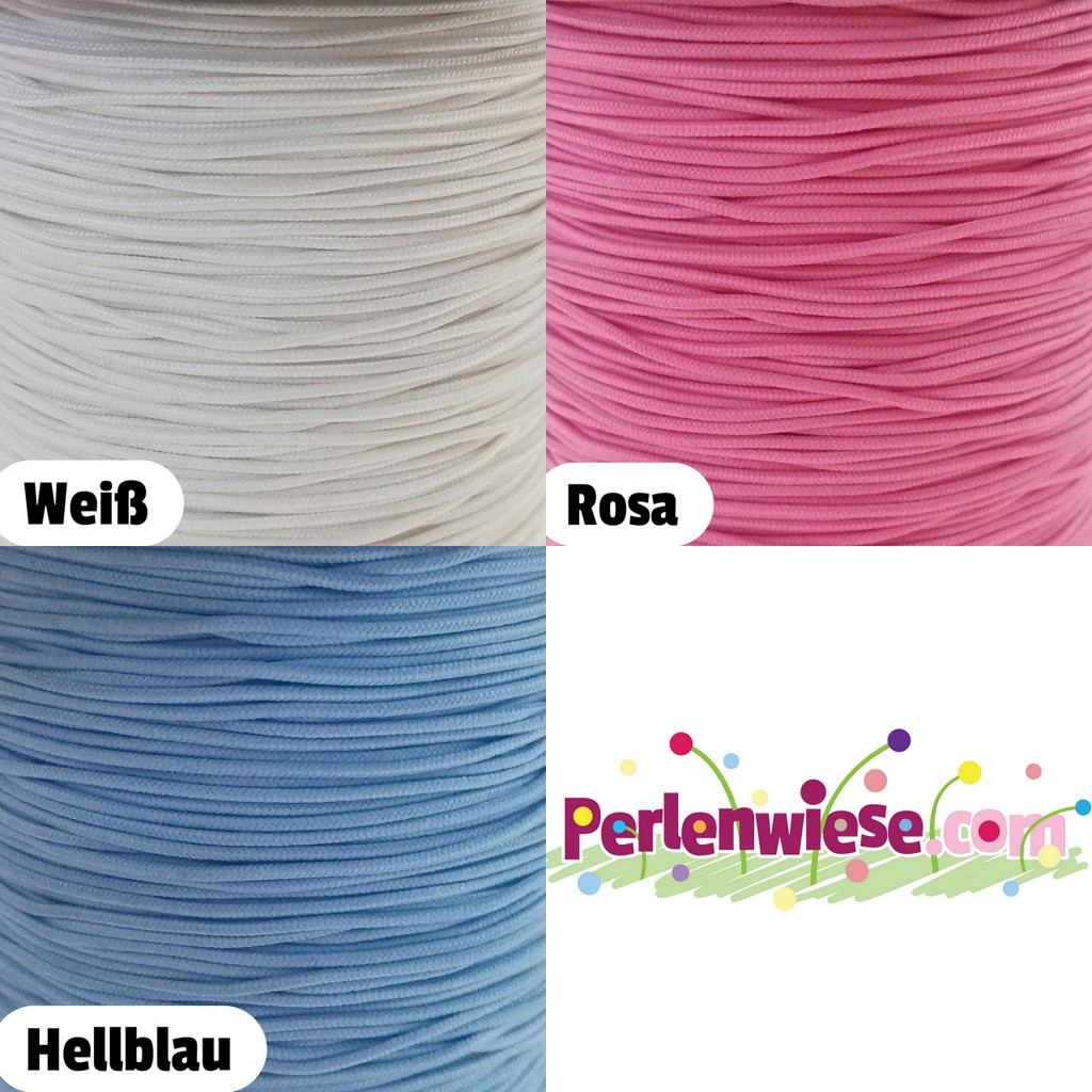 10 Meter Gummikordel   |   Ø ca. 1,8 mm   |   Polyester-Mantelgeflecht, Seele aus Latexfäden   |  Dehnung: 40%